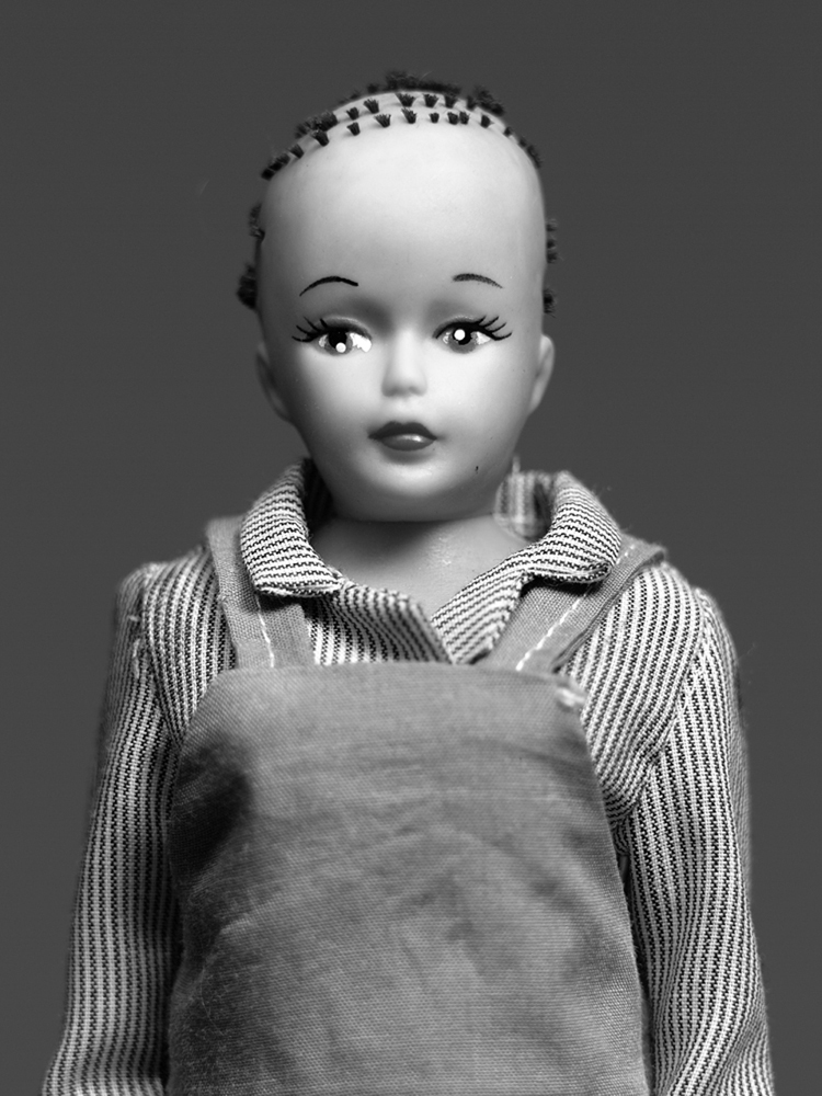 A II. Világháború során koncentrációs táborokba kerülteket eleinte mind lefényképezték. Ahogy azok az arcok ma ránk tekintenek a fényképekről, első ránézésre teljesen egyformának tűnnek, de ha kicsit tovább nézzük őket, láthatóvá válnak a különbségek, az egyéniségek. Az akkor elkövetett háborús bűntettek szinte bárkivel, mindanynyiunkkal megeshettek volna. Nem számítottak a különbségek. Az sem számít, hogy fantasztikus pónis vagy céllövöldei kétpálcás, a babák is hasonlónak látszanak. During World War II, the first people deported to concentration camps were all photographed. Their faces, looking back at us today from those photos, all appear identical at first sight. However, if we keep watching them for a while, the differences as well as their personalities emerge. The war crimes committed at that time could have happened to any or all of us. No matter the differences. Similarly, whether a fantastic pony doll or a two-stick shooting gallery doll, the dolls look alike just as well. 40x30 cm lambda print 1/5 2007 |