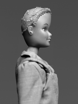 A II. Világháború során koncentrációs táborokba kerülteket eleinte mind lefényképezték. Ahogy azok az arcok ma ránk tekintenek a fényképekről, első ránézésre teljesen egyformának tűnnek, de ha kicsit tovább nézzük őket, láthatóvá válnak a különbségek, az egyéniségek. Az akkor elkövetett háborús bűntettek szinte bárkivel, mindanynyiunkkal megeshettek volna. Nem számítottak a különbségek. Az sem számít, hogy fantasztikus pónis vagy céllövöldei kétpálcás, a babák is hasonlónak látszanak. During World War II, the first people deported to concentration camps were all photographed. Their faces, looking back at us today from those photos, all appear identical at first sight. However, if we keep watching them for a while, the differences as well as their personalities emerge. The war crimes committed at that time could have happened to any or all of us. No matter the differences. Similarly, whether a fantastic pony doll or a two-stick shooting gallery doll, the dolls look alike just as well. 40x30 cm lambda print 1/5 2007 |